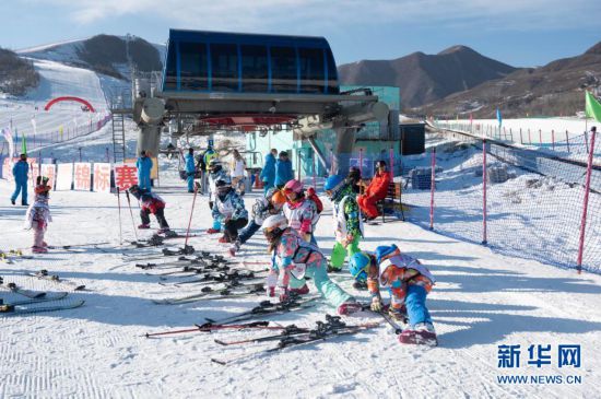 12月27日,在娅豪国际滑雪场内,滑雪爱好者在进行热身活动。