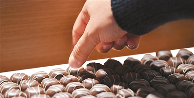 10月1日,在瑞士格吕耶尔地区布罗克的凯雅巧克力博物馆,参观者品尝巧克力。